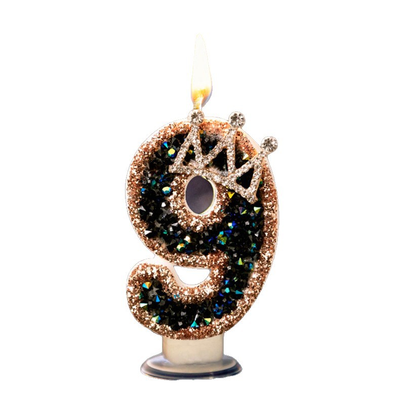 黑色镶钻皇冠酥油灯数字蜡烛生日蛋糕装饰ins风网红王子公主水晶