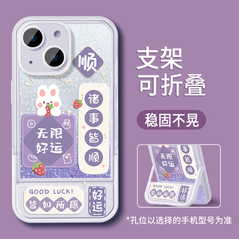 适用苹果16promax手机壳13兔子女孩15隐形支架14可爱折叠12硅胶11