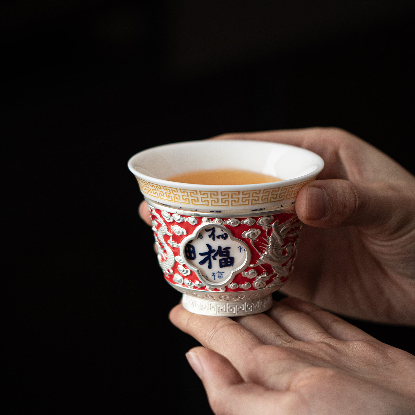 鎏银龙凤百福转转茶杯可变色主人杯家用功夫茶具单个品茗杯礼盒装