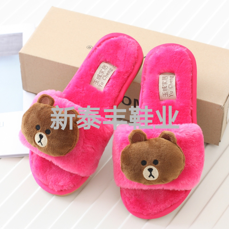 卡通动物两穿毛绒兔毛拖鞋室内居家防滑舒适保暖厂家直销男女小孩