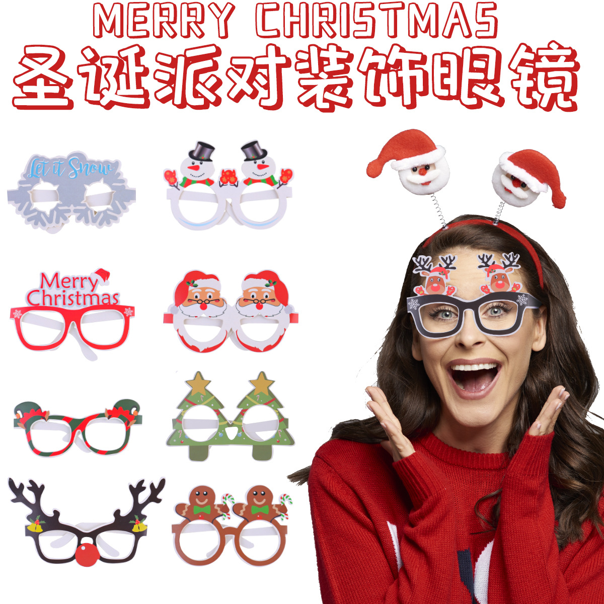 跨境圣诞派对眼镜道具 圣诞节儿童圣诞老人雪人3D纸质眼镜装饰品