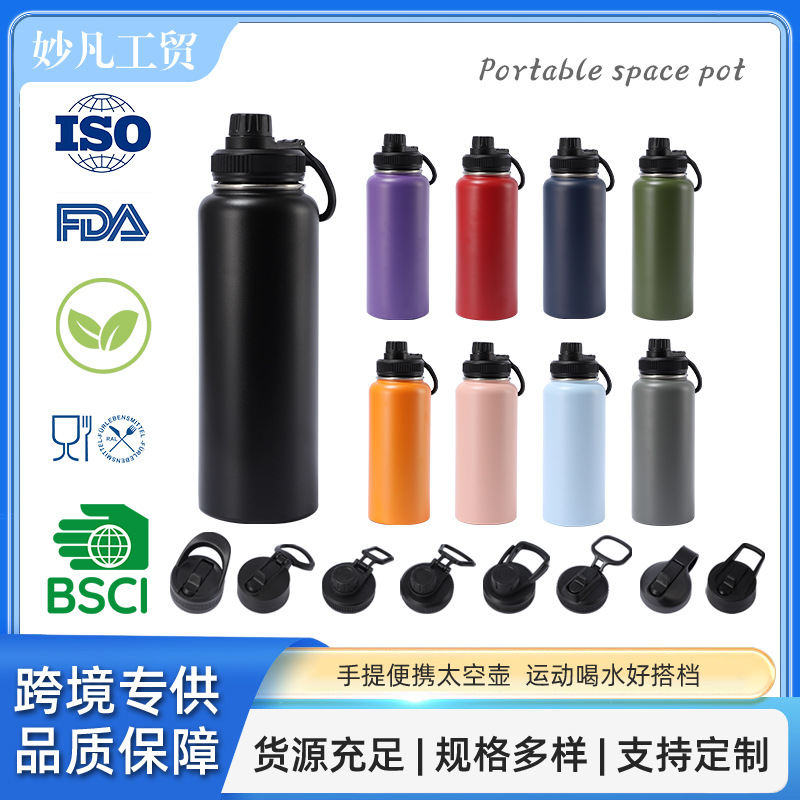新款304不锈钢太空壶保温杯手提户外便携直饮运动大容量水壶批发