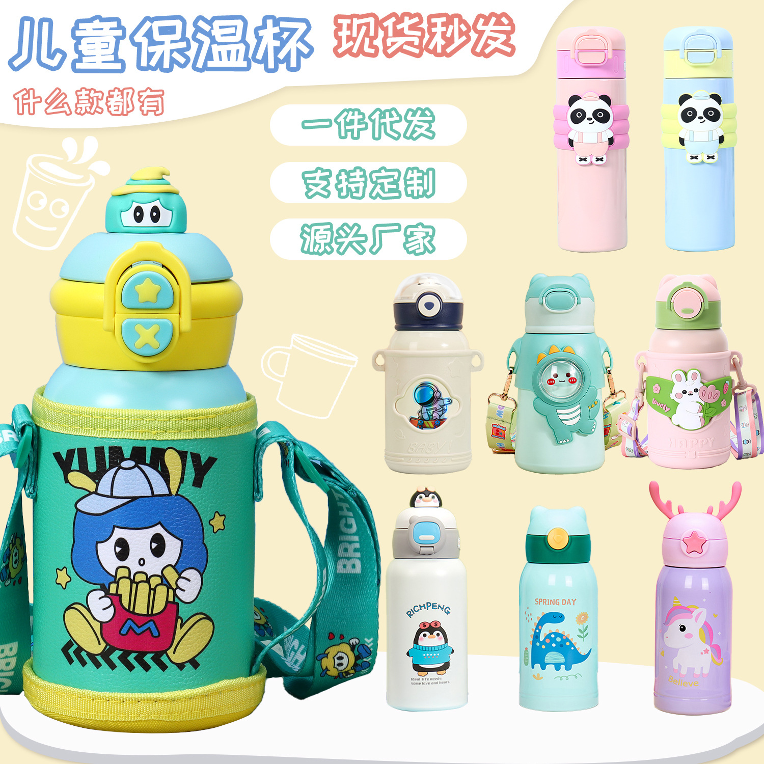 新款316真空保温杯卡通小丸子巨无霸可爱吸管杯手柄高颜值办公室