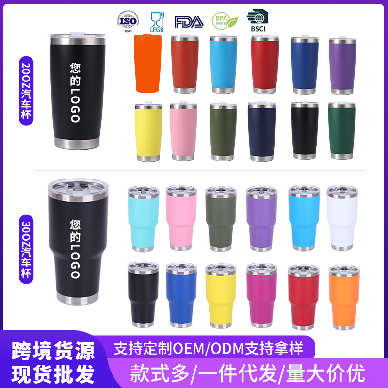 跨境20oz30oz喷塑汽车啤酒杯不锈钢保温保冷杯车载便携冰霸水杯