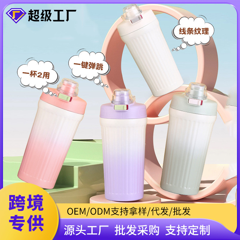 便携随手不锈钢保温杯女生办公室双饮吸管水壶学生家用喝水情侣杯