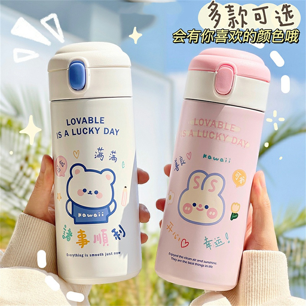 ins风少女心保温杯可爱小熊吸管杯保温壶学生卡通弹跳水杯子定制