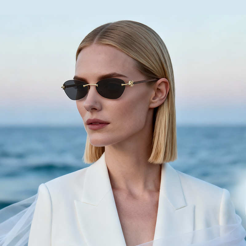 新款女士欧美跨境方形猫眼无框切边墨镜女士高级感眼镜金属太阳镜