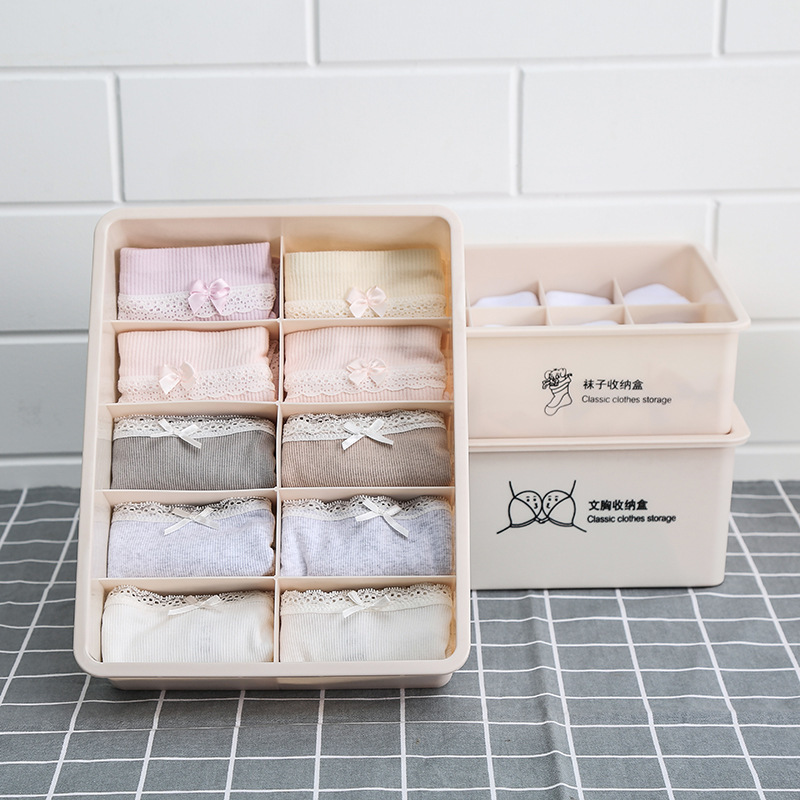 印花内衣内裤收纳盒衣柜整理盒分格抽屉式三合一居家日用整理神器