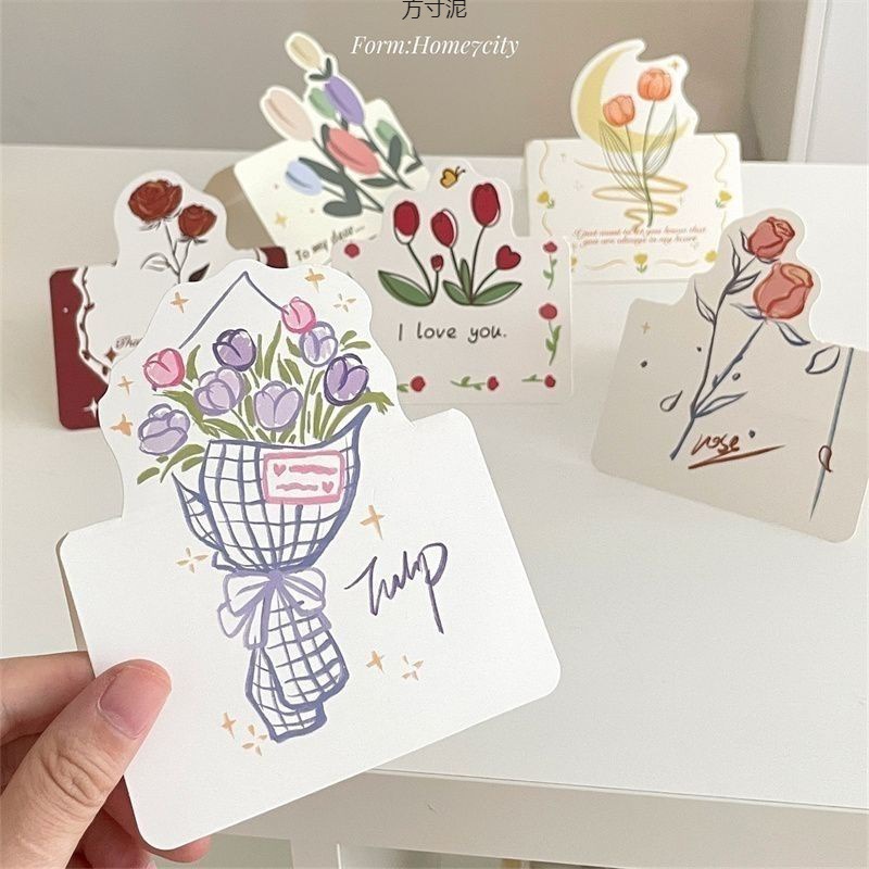 贺卡风郁金香系列立体花束贺卡花艺留言卡节日手写信明信片亚马逊