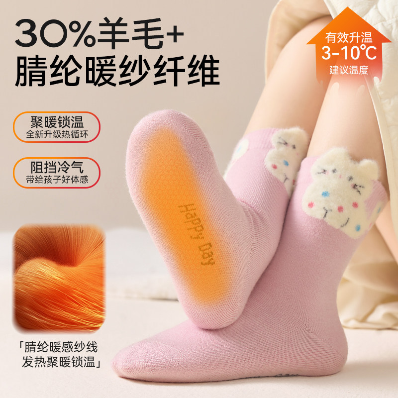 女童袜子冬款加厚羊毛袜儿童秋冬无骨棉袜女孩中大童保暖长筒袜冬