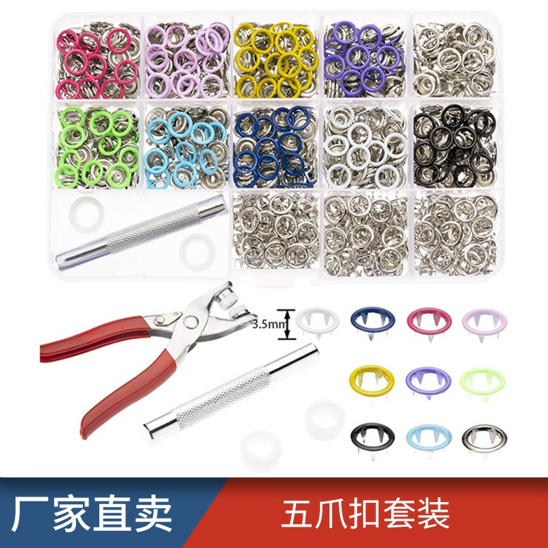 亚马逊 跨境婴儿服五爪手压钳厂家直卖9.5MM纯铜空心五爪扣套装