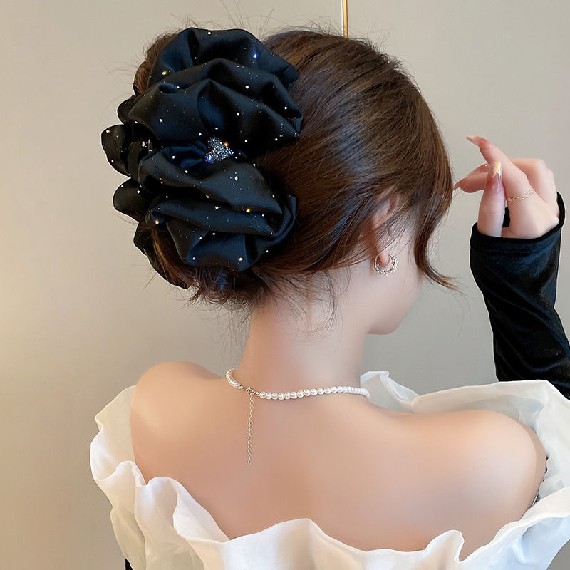 高级感黑色满天星抓夹女新款发夹后脑勺鲨鱼夹子大号盘发头饰饰品