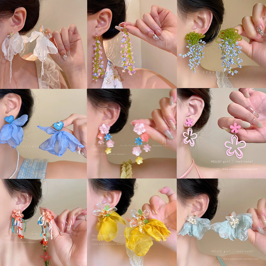 2025新款小清新花朵耳钉女春夏小众甜美耳环高级感气质百搭耳饰品