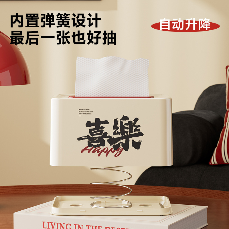 纸巾盒高级感客厅家用抽纸盒创意茶几卧室弹簧升降发财喜乐抽纸盒