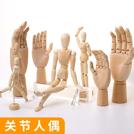 十六寸批发木偶关节人木手手掌模型木质可调节木人偶画画人体模型