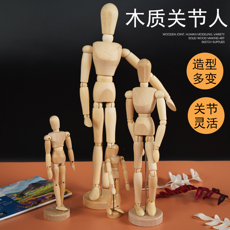 12寸美术画画用木头人偶灵活可动木人关节手仿人体素描木偶人模型