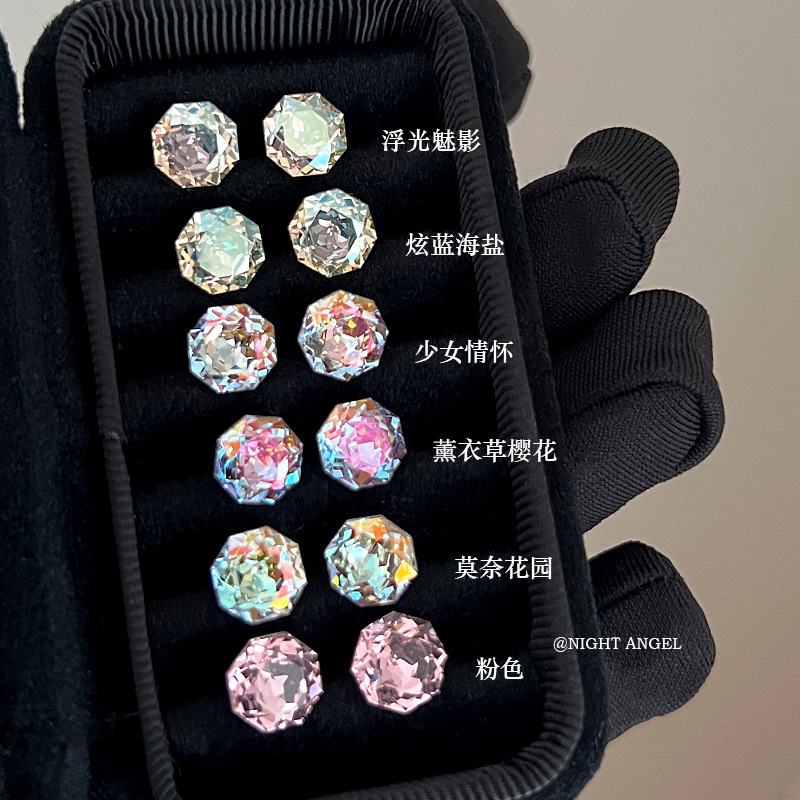 千禧玫瑰切耳骨钉耳蜗钉个性超闪8mm钛钢小众高级感炫彩镀膜耳钉