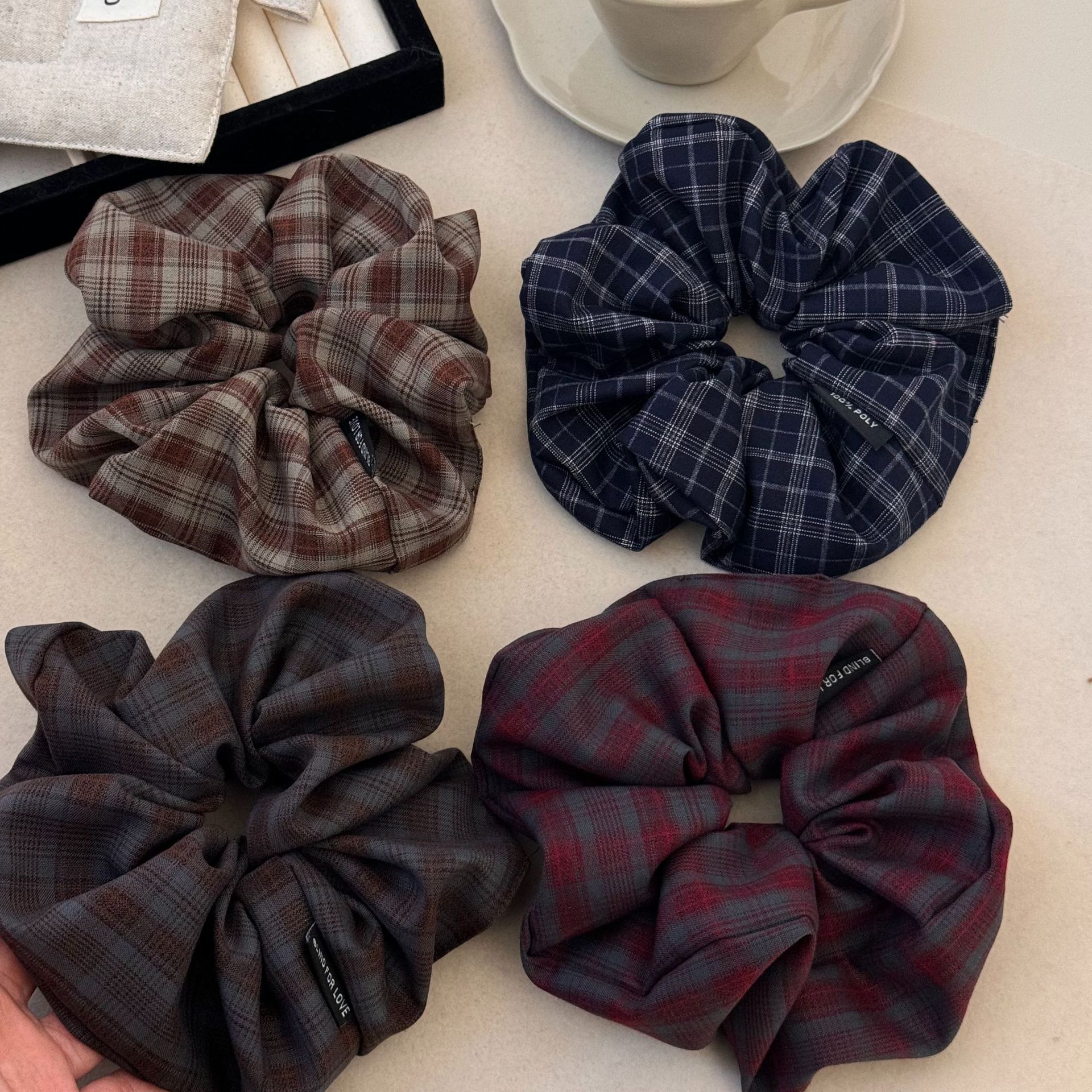 韩系格子布艺大肠发圈女2024新款高级感气质丸子头发绳低马尾头绳
