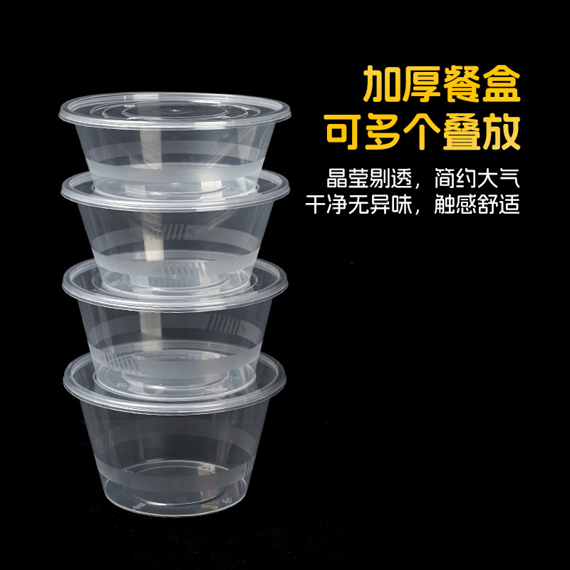 加厚一次性圆形透明餐盒食品级PP微波加热冷藏外卖盒餐饮包装盒
