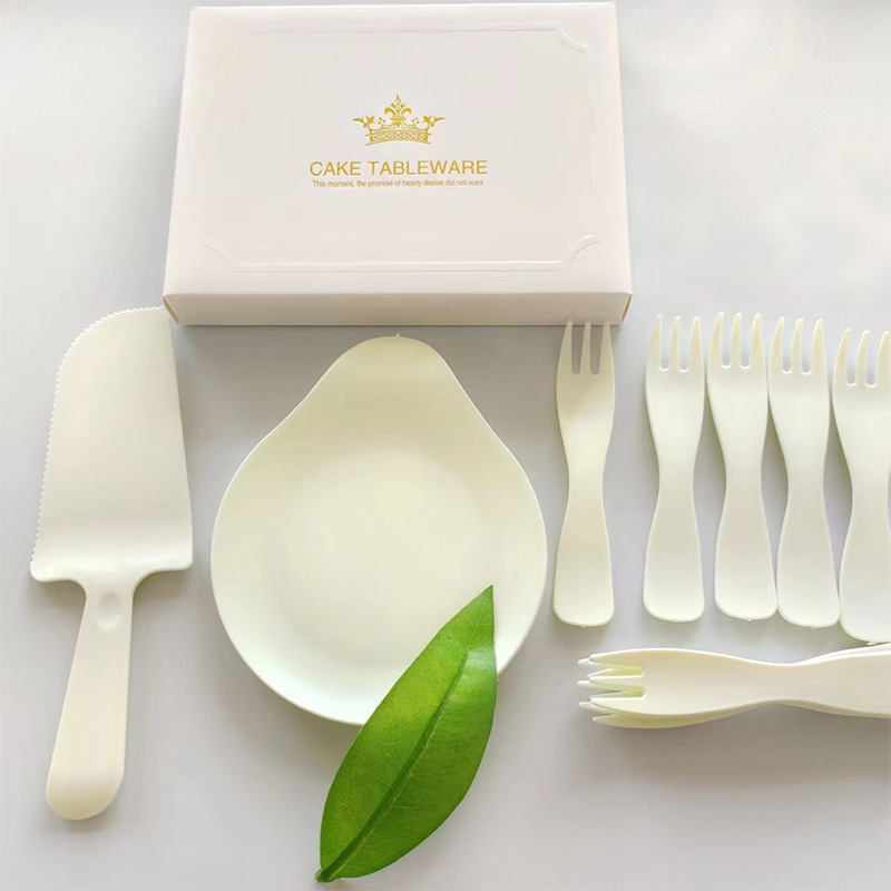 高档一次性蛋糕塑料餐盘水滴刀叉餐具组合生日盘子套装零食礼盒装