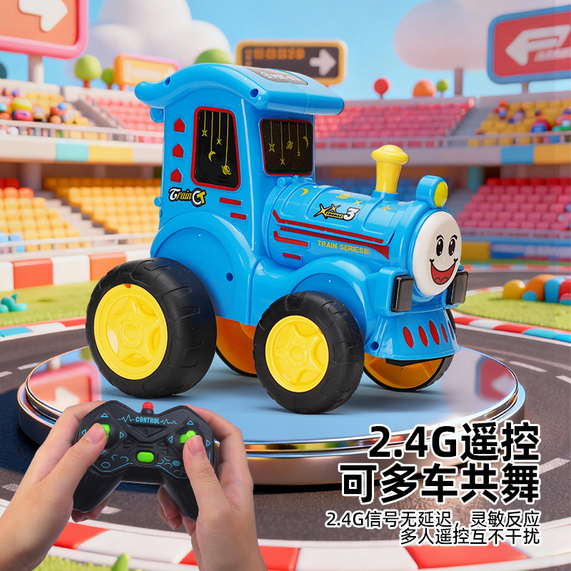 厂家【跳舞特技小火车】遥控汽车灯光音乐摇摆翻转充电儿童玩具车