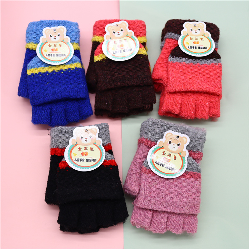 5到12岁儿童翻盖手套男童女童小学生半指漏指头写字保暖手套冬季