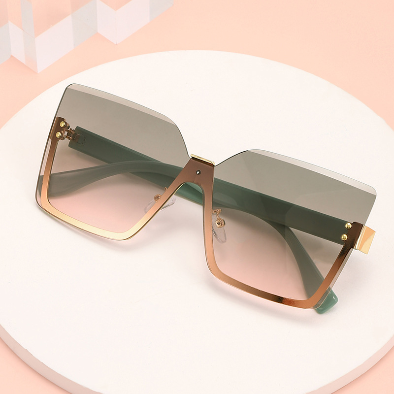 新款无框切边太阳镜 时尚欧美女式墨镜 跨境个性不规则海洋片眼镜