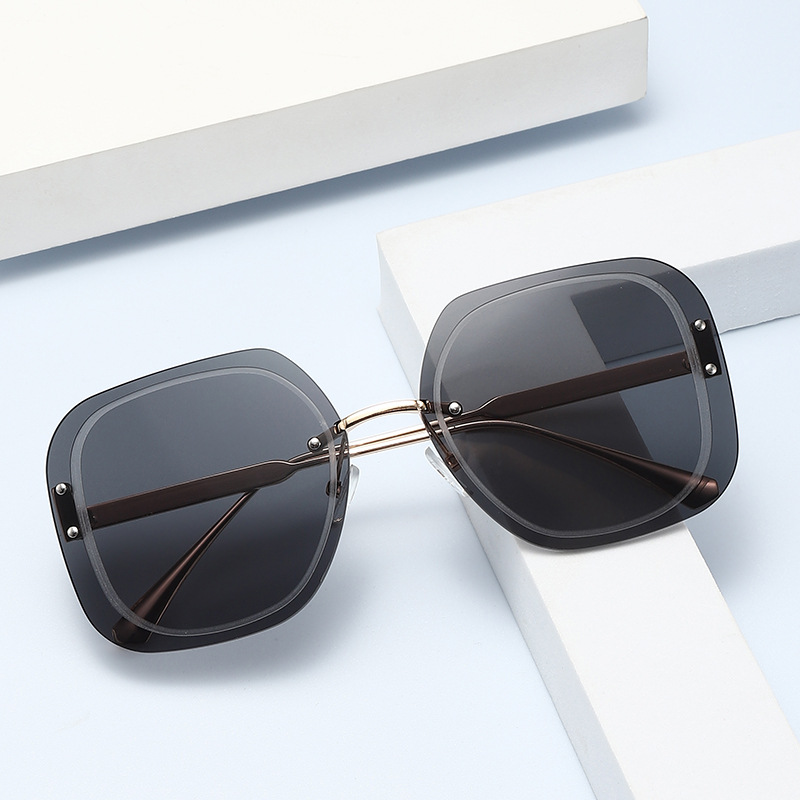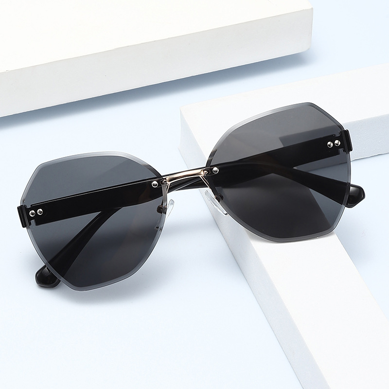 新款女士无框太阳镜 圆脸显瘦防紫外线太阳眼镜 欧美时尚复古墨镜
