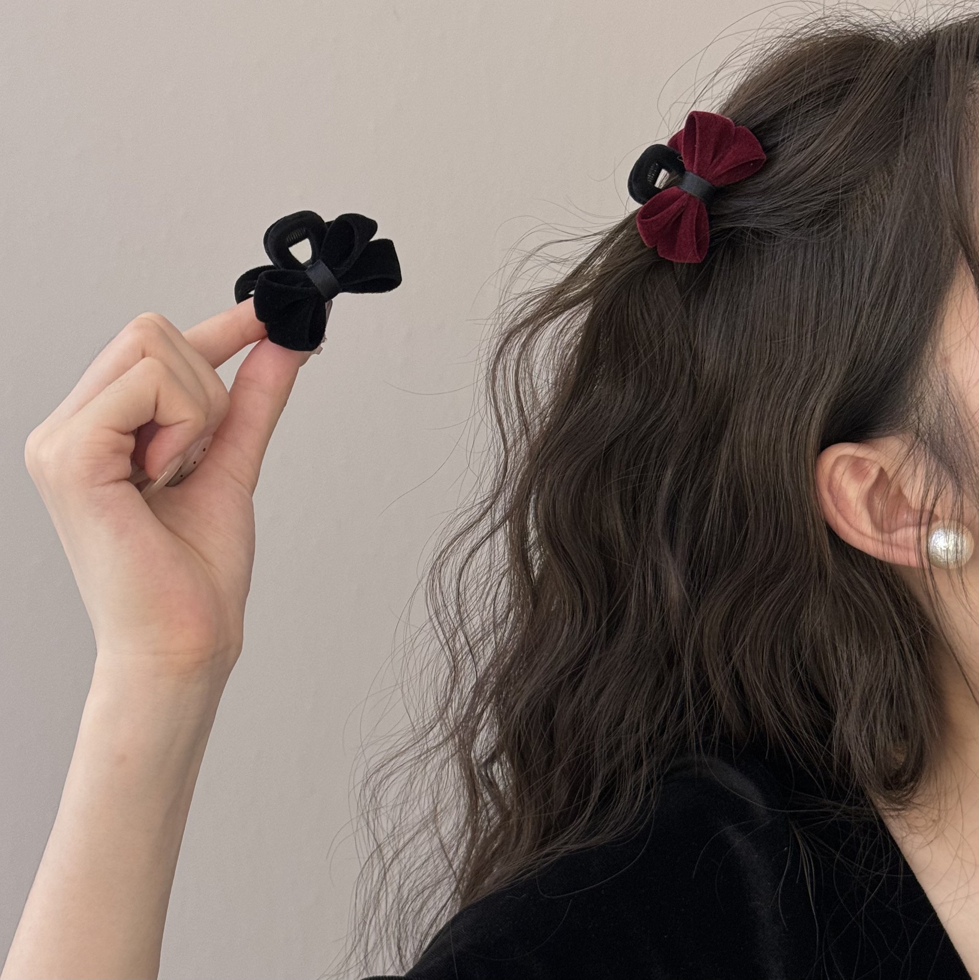 韩国黑色丝绒蝴蝶结发夹发圈秋冬款复古侧边夹刘海夹简约皮筋发绳