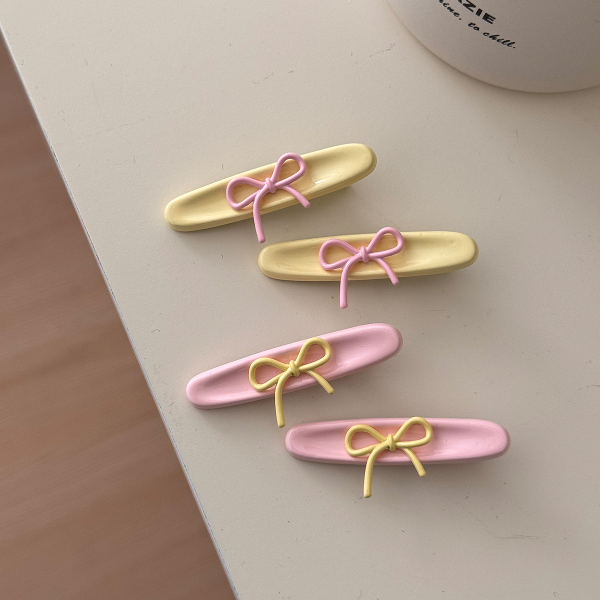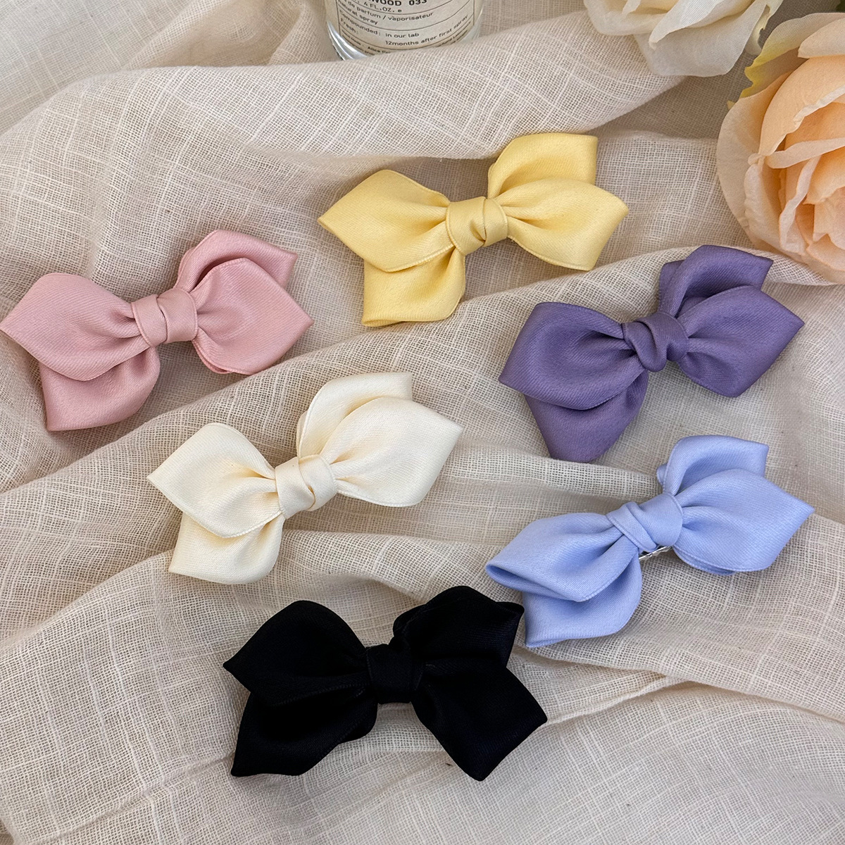法式明媚奶油色彩蝴蝶结发夹缎面精致侧边刘海碎发夹子2025年新款