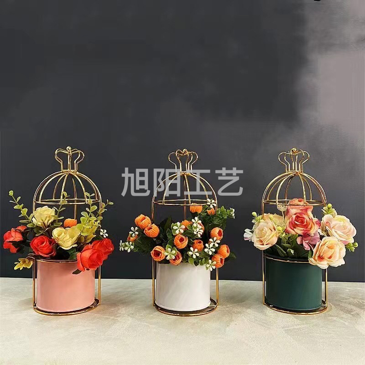 北欧ins铁艺金色铁架水培花瓶摆件 客厅装饰干花花插绿萝水培