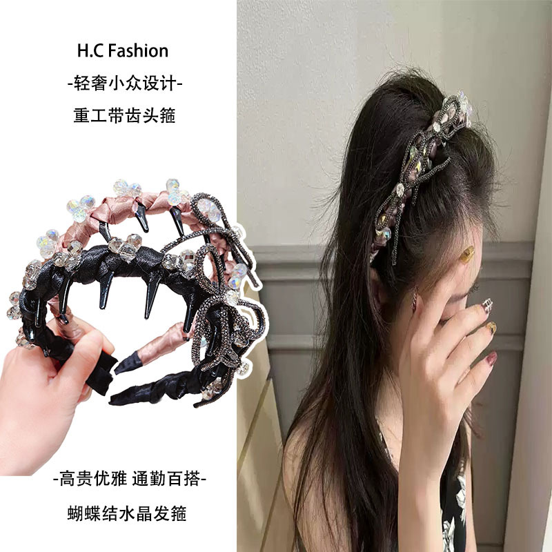 高颅顶发箍高级感黑色系小香风头箍韩国珍珠蝴蝶结简约发窟女发饰