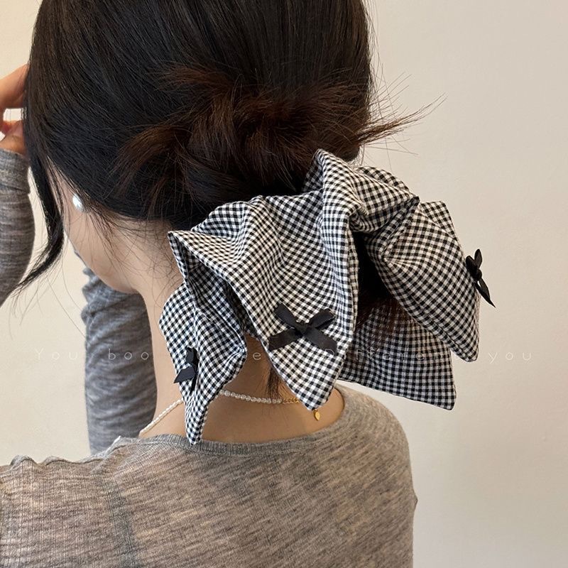 2025新款芭蕾风蝴蝶结大肠发圈女款小众设计感格纹方巾丸子头发饰