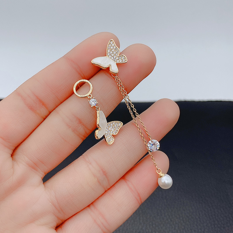 S925银针个性满钻蝴蝶耳坠高级感不对称耳骨夹S925银针耳环耳饰