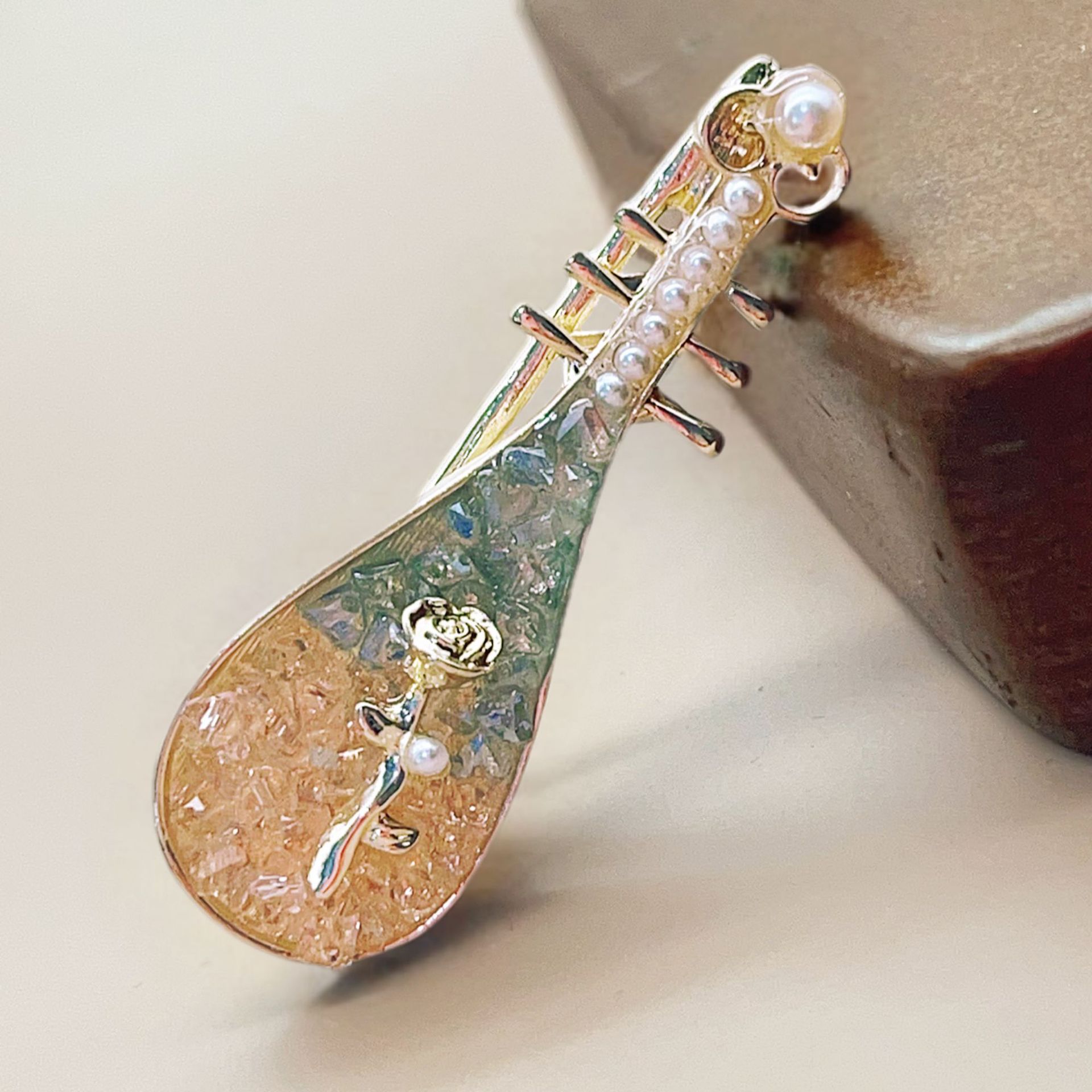 国风玫瑰花琵琶发夹高级感小众侧边夹夹子古风发卡复古头饰发饰女