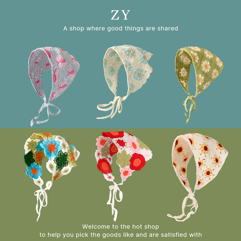 针织头巾女三角巾发带田园风ins风高级感夏季出游甜美可爱风批发