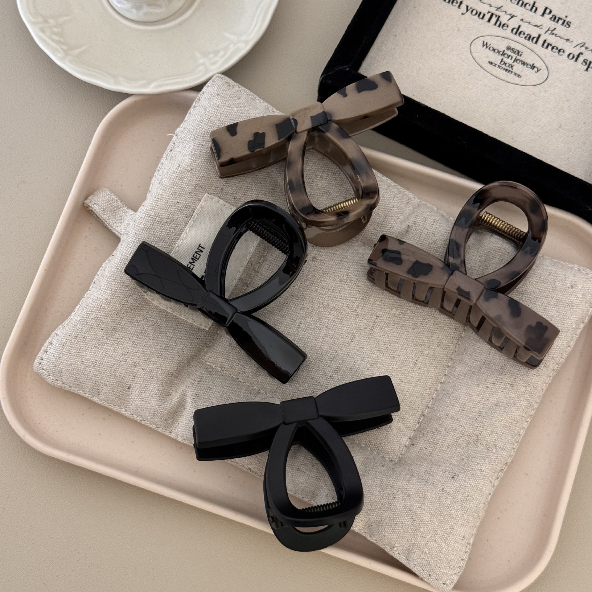 复古回潮~ 新款领结蝴蝶扣马尾夹高级感蝴蝶结发夹中号盘发鲨鱼夹