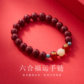 杭州灵隐好运和田玉高含量朱砂手串女蛇年本命年佩戴六合生肖手链