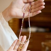 天然碧玺项链女S925银扎基拉姆唐卡项链彩虹碧玺水晶珍珠项链批发