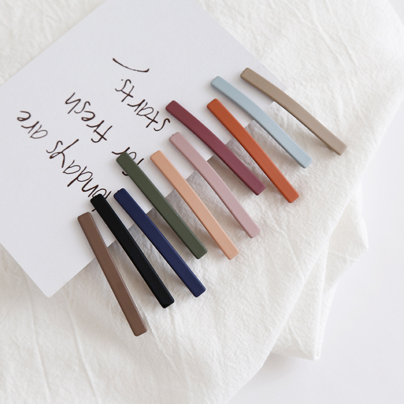 日韩版简约磨砂一字夹纯彩马卡龙色少女边夹甜美学院风刘海夹发夹