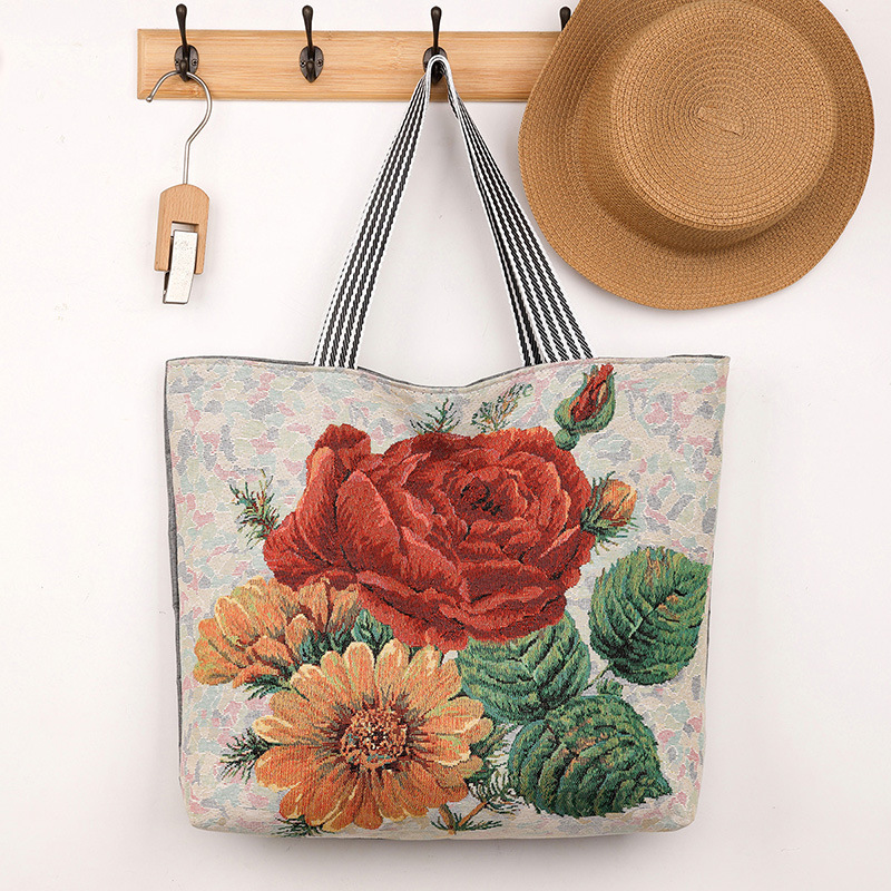 厂家直销2024新款卡通老鼠针织手提单肩包大容量购物袋帆布包女