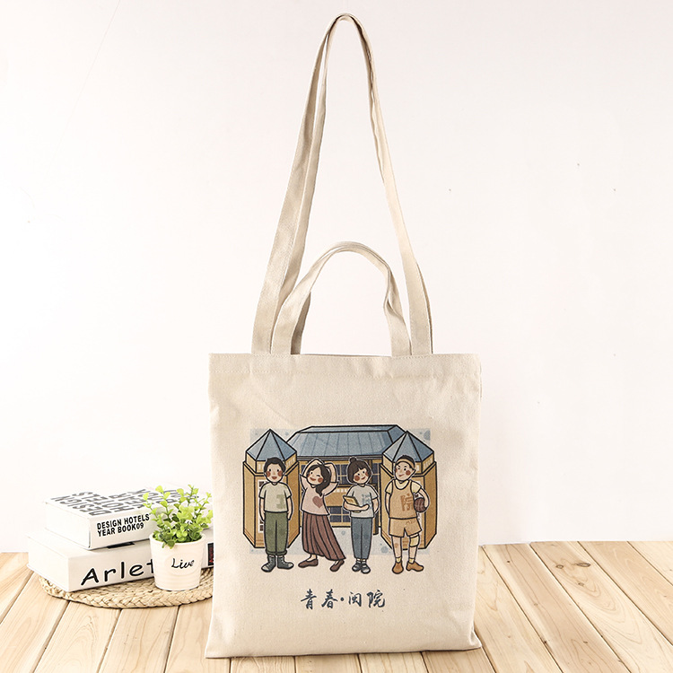 创意卡通手提帆布袋 学生收纳棉布袋 商场购物单肩帆布包可印logo