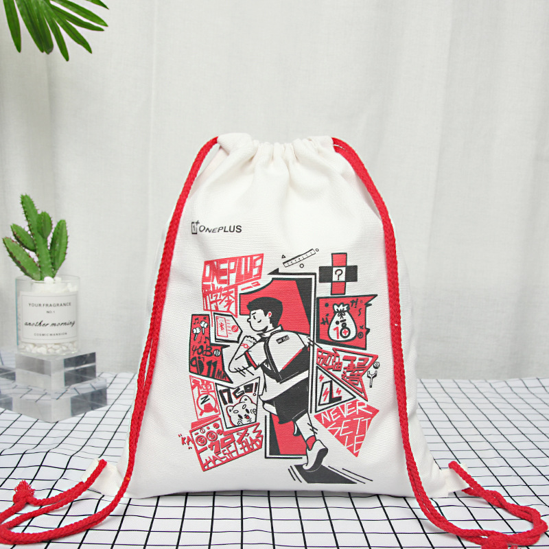 抽绳双肩帆布背包批发加印logo 卡通周边礼品束口袋 服装收纳书袋