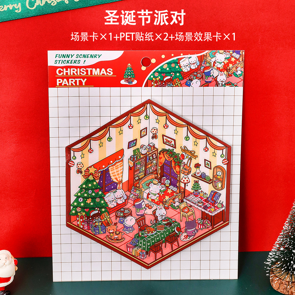 圣诞节造景贴纸卡通3d立体微缩场景手帐贴画礼品学生diy圣诞贴纸