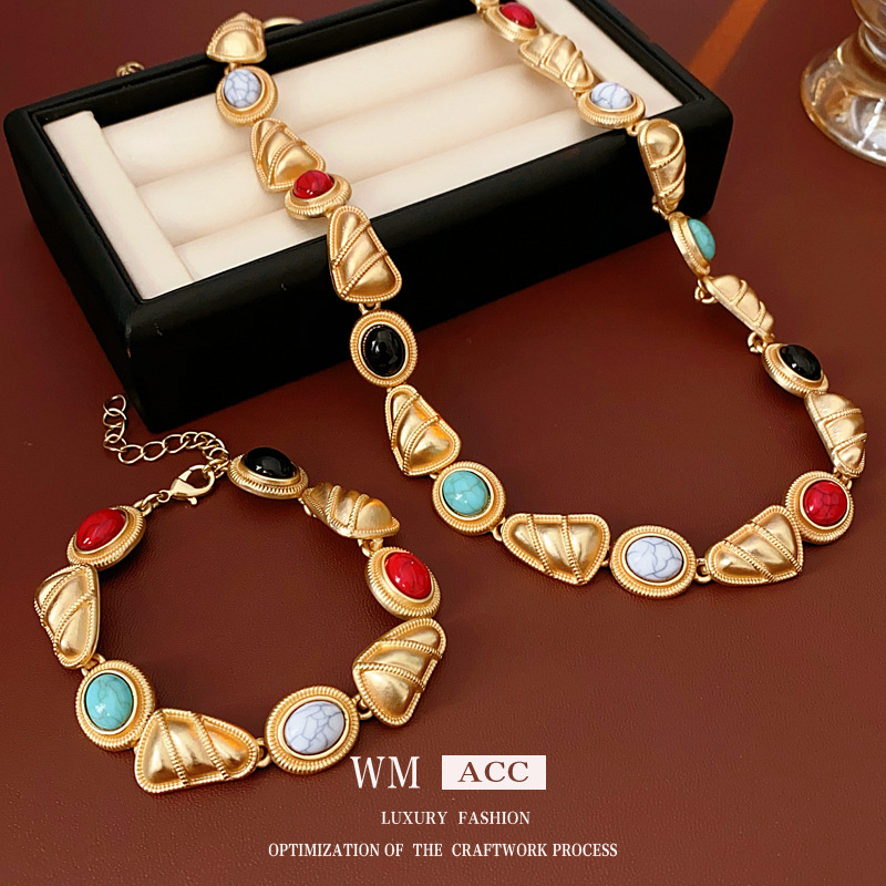 中古vintage首饰套装三角形串珠手链锁骨链时尚百搭高级感饰品女