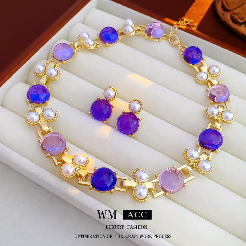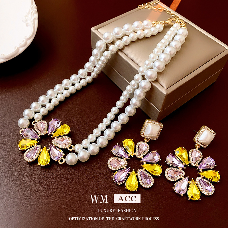 中古vintage银针耳钉 圆形镶钻水滴项链时尚轻奢高级感首饰套装女