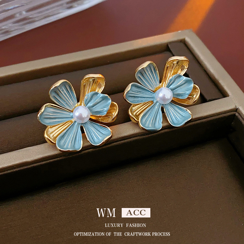 中古vintage银针滴油花朵珍珠耳环轻奢高级感坠法式气质饰工厂家