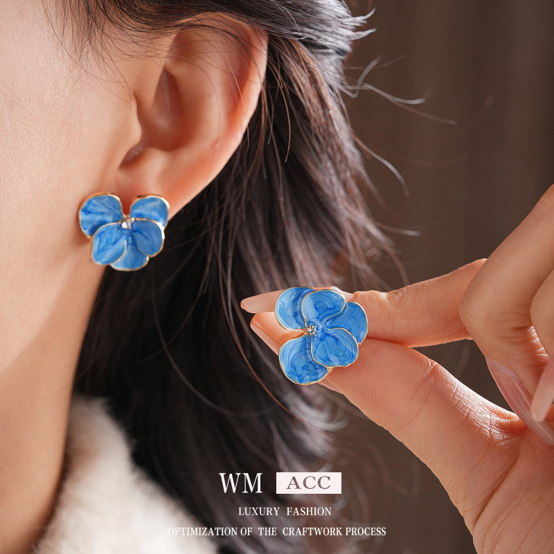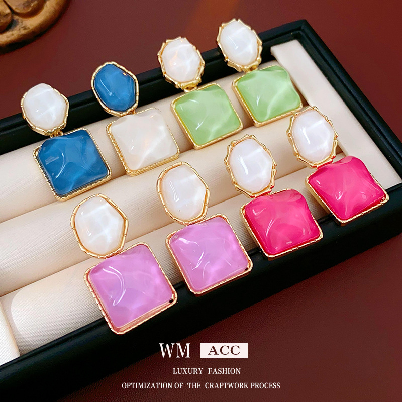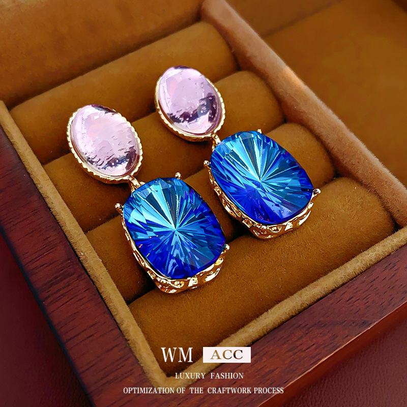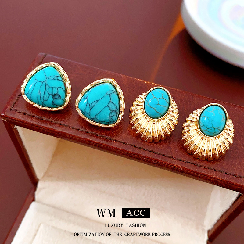 中古vintage耳环银针滴油蓝绿撞色耳钉法式复古小众高级感耳饰女