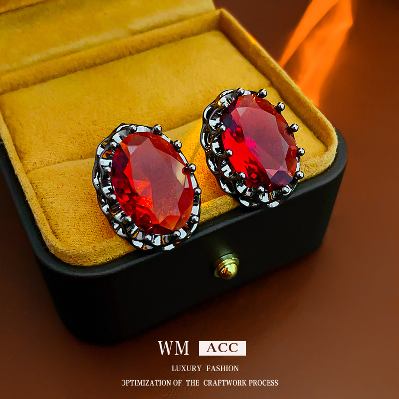 中古vintage银针耳环锆石椭圆耳钉轻奢宫廷风耳环气质高级感耳饰