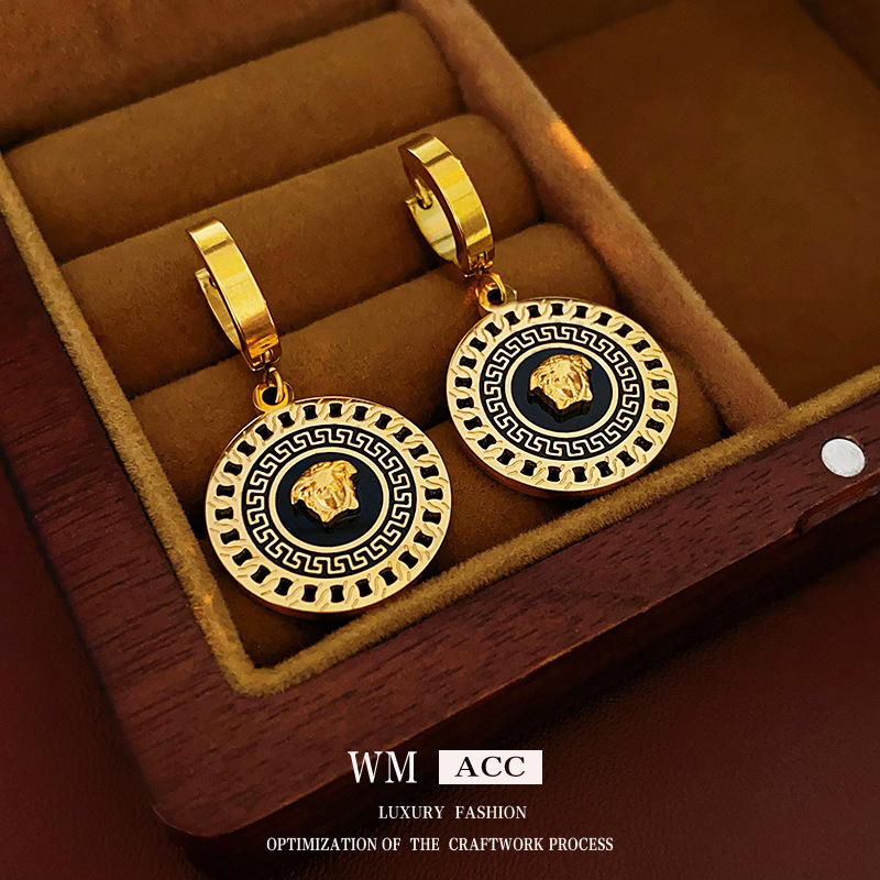 中古人像圆圈耳坠 时尚复古轻奢高级感耳环 个性简约百搭耳饰批发